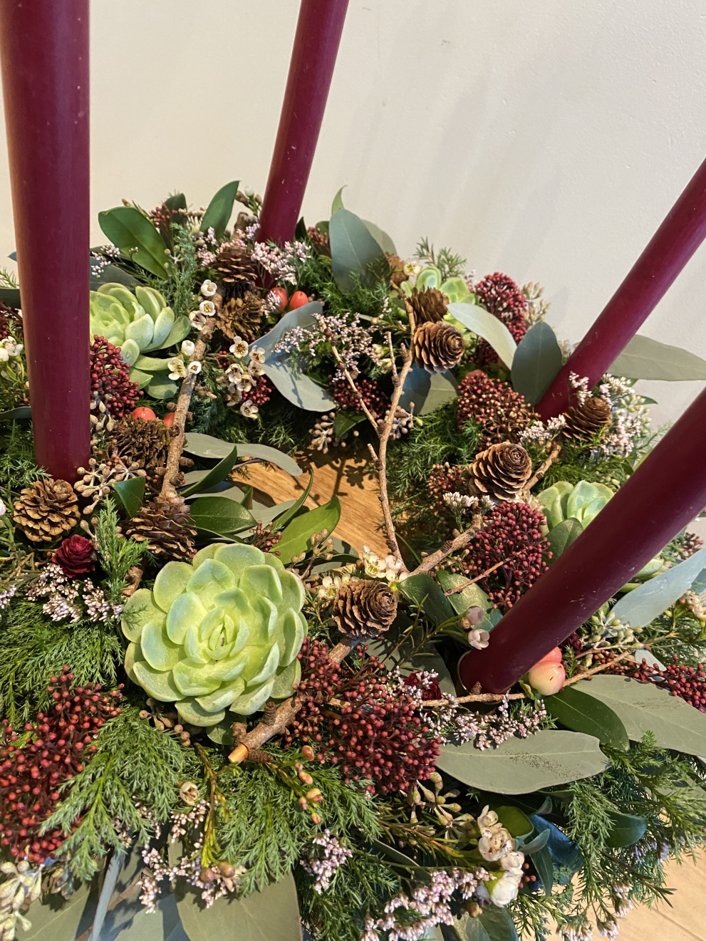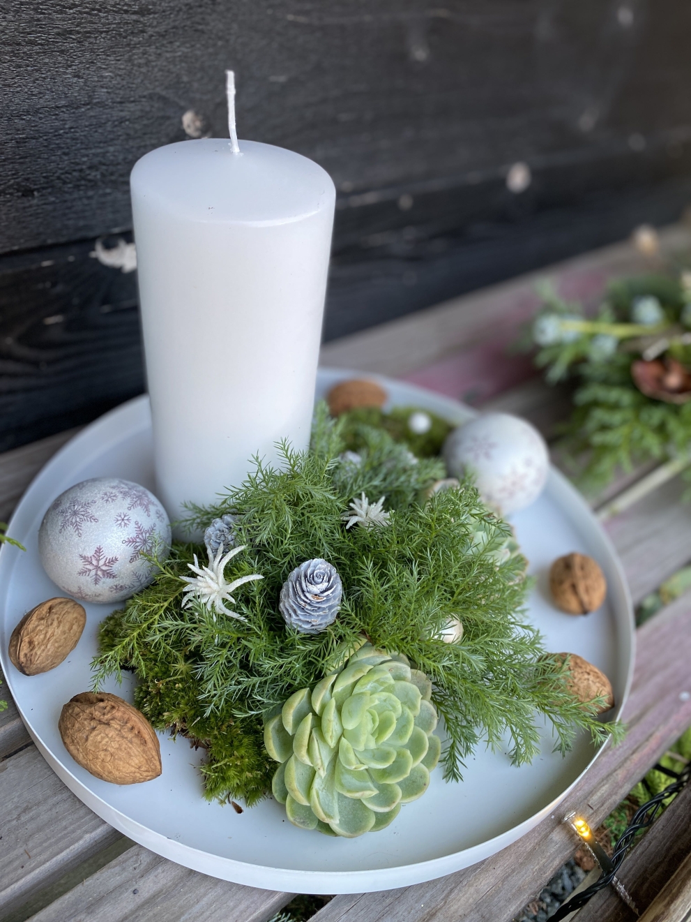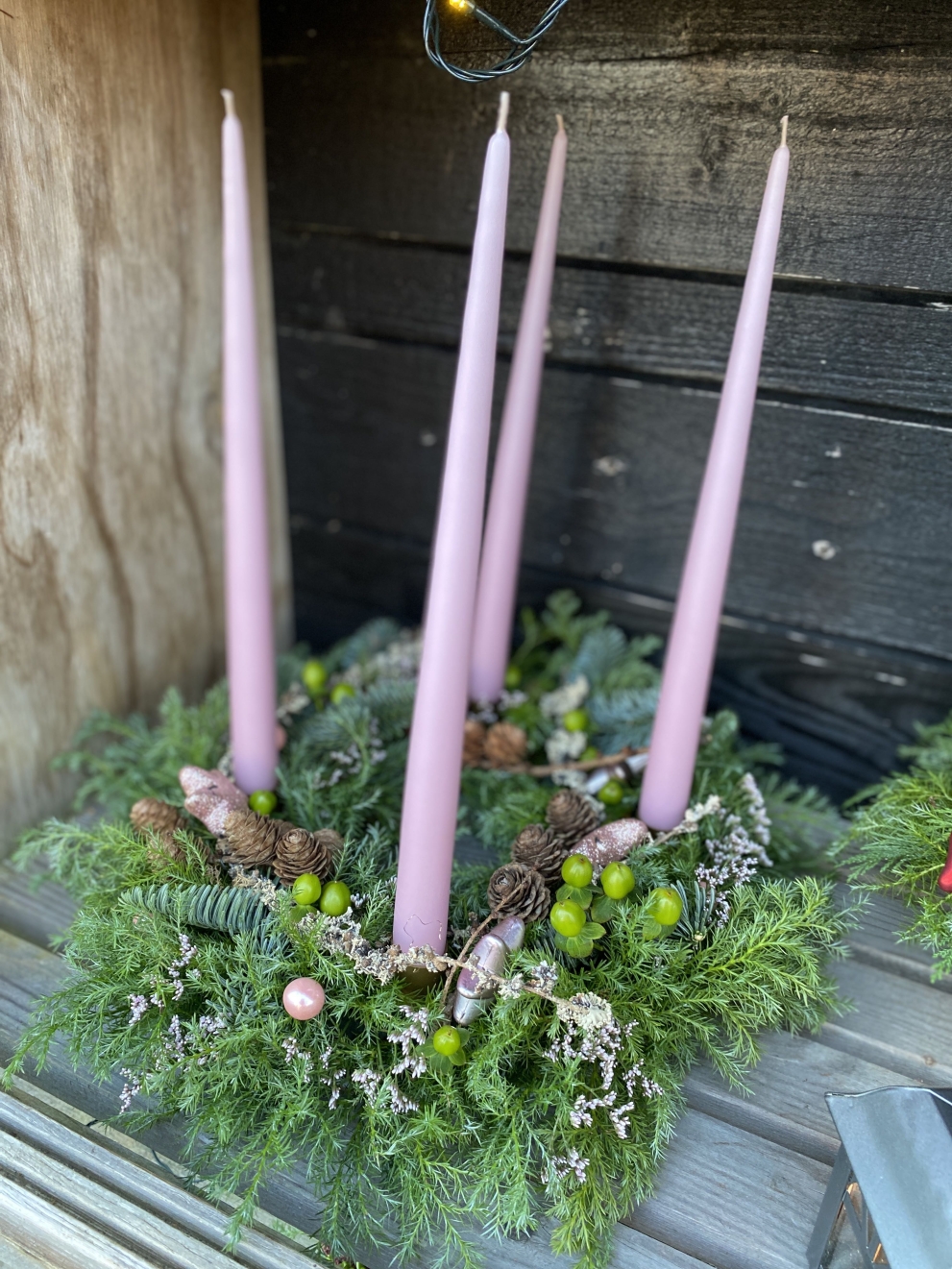 Derudover tilbyder jeg inspirerende workshops, hvor vi sammen skaber kranse, dekorationer og lys. Her er der plads til kreativitet og fordybelse, uanset dit erfaringsniveau.
